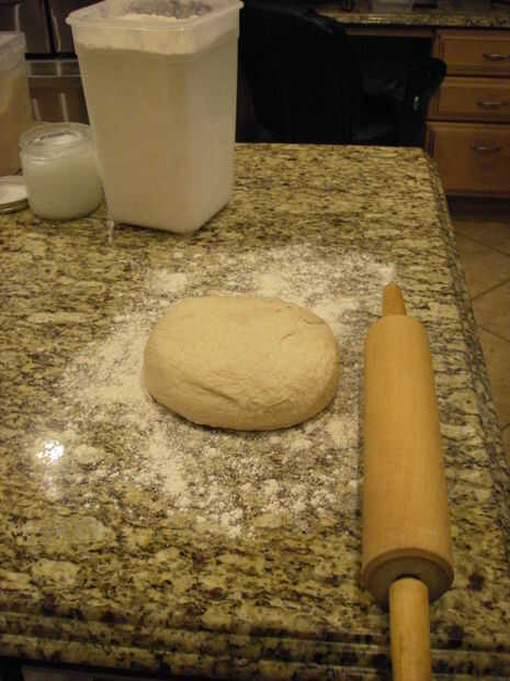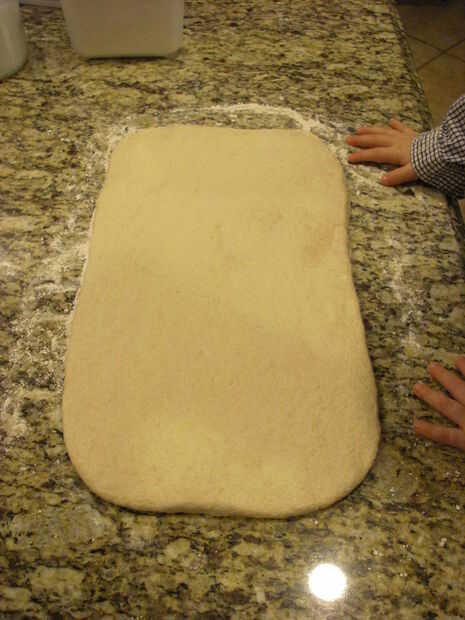 Formar una bola de masa del tamaño de una toronja muy grande.  Enrolle la masa a 1 pulgada de grueso y rectangulares 18 x 12 pulgadas.