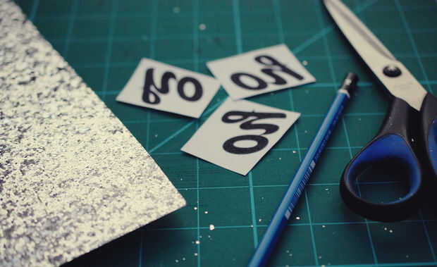 Para crear el texto en la parte delantera de los ornamentos, utilizamos tipografía de Torta de azúcar de Ale Paul. Cuando se imprime el texto, debe imprimir a la inversa. Esto facilita la transferencia a su brillante papel.