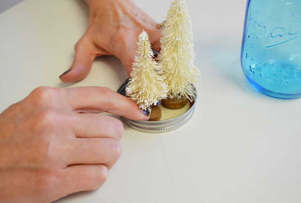 Oprima firmemente y mantenga durante 10 segundos. Continúe este paso hasta que usted ha pegado todos sus árboles o figuras en su lugar. Dejar endurecer durante unos minutos.