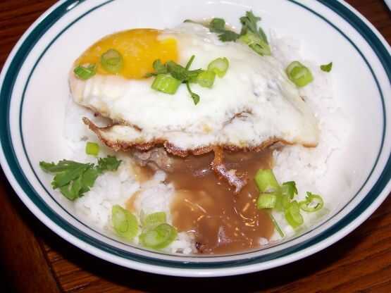 Mi favorito era Moco Loco, que es una cama de arroz y empanada de la hamburguesa con un huevo frito y salsa marrón.