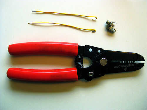 -Con el wirestripper, extraer un pequeño trozo de la vaina de plástico.