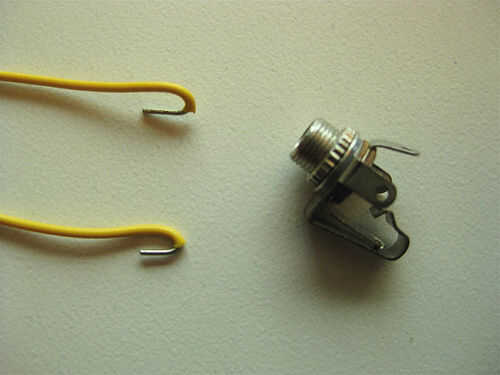 -Colocar los ganchos de cable pelado en las lengüetas de la toma de interruptor. El gancho en el cable ayudará a mantener el cable en el conector cuando vayas a lo de la soldadura.