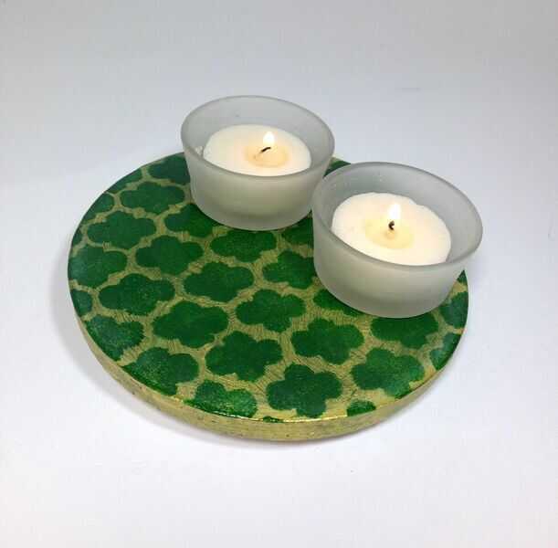La mayoría de pinturas de arte y medios no son resistentes a altas temperaturas, así utilizar este soporte para platos de fríos o calientes. También se ve bastante con una vela pequeña en la parte superior o muestra por sí mismo, leerlo fuera de algunas zonas verdes en su pieza central.