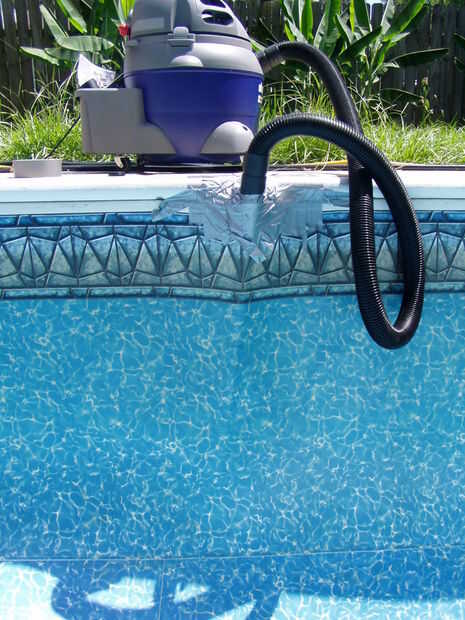 Tirar de una pequeña sección de la llanta del revestimiento de la ranura que está manteniendo. Hacer esto a mitad de camino por uno de los lados largos. Inserte un par de dimes o un níquel en la brecha en ambos extremos de la sección de su eliminación para fijar el resto de la llanta del trazador de líneas. Introduzca 2-3 pies de manguera de la aspiradora para mojado/seco a través del espacio y detrás de la línea. Utilice la cinta para sellar el área alrededor de la manguera de modo que pueda formar un vacío. Sellar todos los huecos si los hubiera. Ejecute la aspiradora durante al menos 15 minutos antes de comenzar a llenar la piscina. Si en cualquier momento usted tiene que apagar el vacío también apagar el agua y no vuelva a encender el agua hasta que vuelva a encender la aspiradora y espere 15 minutos. Mantener un ojo en el trazador de líneas como la piscina llena y elaborar cualquier arruga empujándolos hacia la superficie antes de llegar demasiado lejos por debajo del nivel de agua.