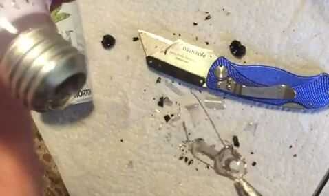 Una vez el vidrio es roto podrá introducir su nariz de aguja y quitar todos los componentes internos de la bombilla