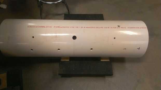 Cortado a la medida y luego lijar los extremos liso. Se necesita aprovechar los agujeros para el orificio de aspiración, un desagüe en la parte inferior, cables eléctricos para la calefacción en el interior, cables de control para medir la temperatura y un puerto de vacío. Dicho todo esto, he puesto 7 agujeros en esta pipa.