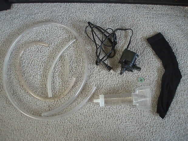 Las piezas que necesita son: Un antiguo cabezal del motor (bomba) con un impulsor magnético. Un accesorio de aspiradora regular grava. Tubo de plástico de varios tamaños. Malla metálica fina, como pantalla de la ventana. Un calcetín viejo. Una banda de goma.