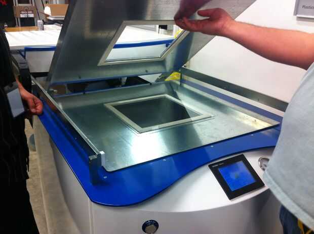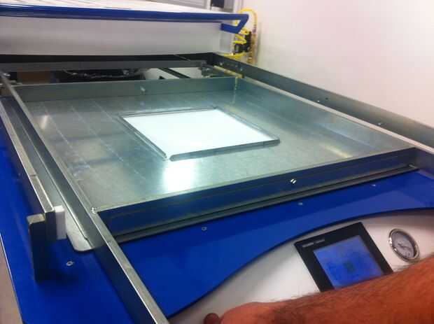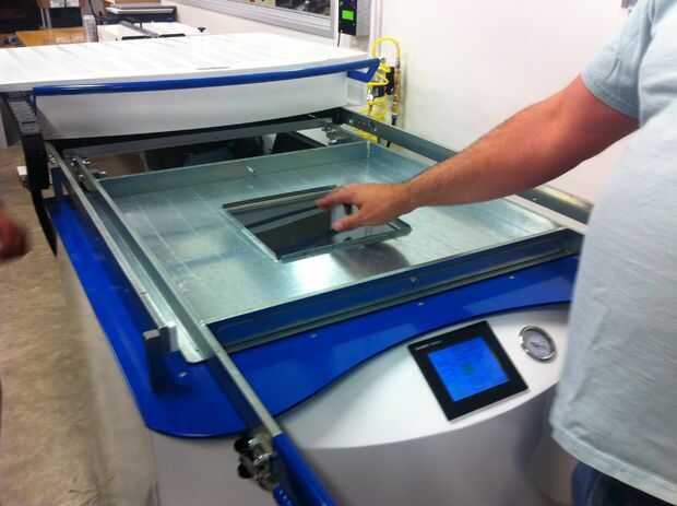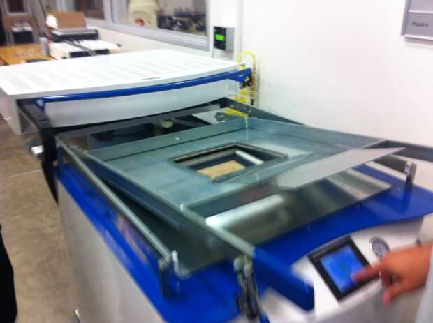 La tabla que contiene el formulario está dentro de la media de la máquina. Levanta la forma en el material reblandecido, que luego se tira hacia abajo alrededor de la forma que hacerlo de forma. Tienes que subir la tabla a su forma y que el "tirón".