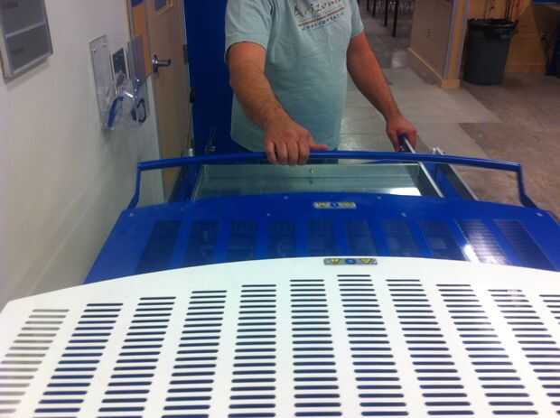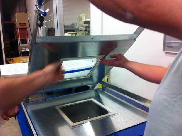Mientras estaba calentando, explicó cómo el calentador rollos de entrada y salida según sea necesario. También explicó eran las ventanas de reducción. Estos son importantes para reducir los desechos material. Si usted tiene un 8" por 8" de la parte, use las ventanas más pequeñas para que no pierda tanto material. Utilice las ventanas más grandes según sea necesario.