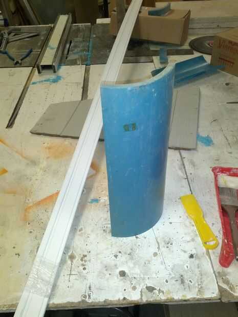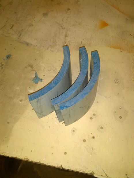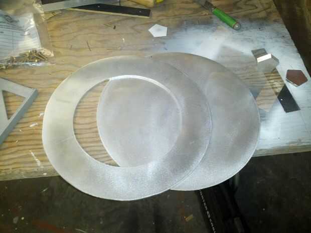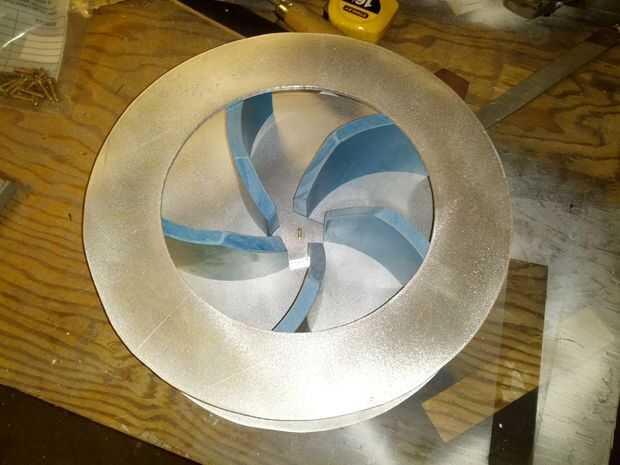 Son las hojas fueron cortadas de 9" pipa de agua. El tubo fue cortado en cuartos en la Sierra de mesa primero cortar en secciones para las cuchillas. Después de la disposición, teniendo en cuenta que forma el eje gira, el interior de las esquinas de las hojas deben cortarse en un ángulo de 45 grados.