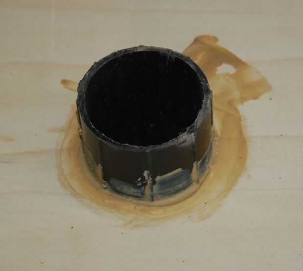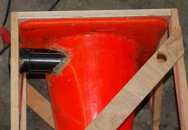 6. poner un anillo de líquido clavos o algo como alrededor de la base del cono y después atorníllelo a la base de madera con el orificio de 2.5".