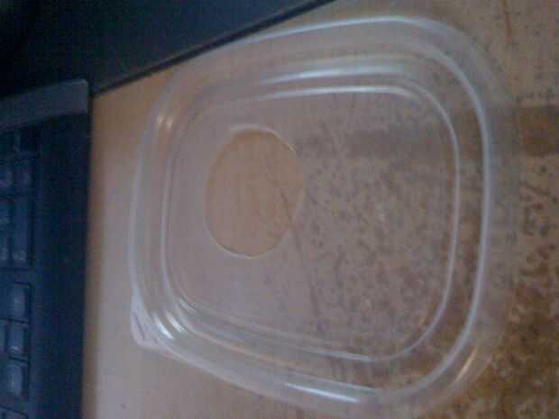 3. plástica tapa o cualquier otra fuente para hacer la caja del sello en la parte superior de la aspiradora. Usé la tapa de uno de esos contenedores de carne de almuerzo reciclable.