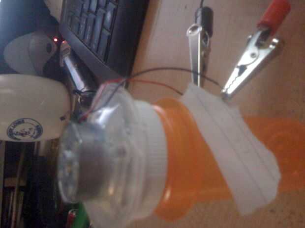 Usted puede ver por encima que está sosteniendo un pedazo de papel para el puerto de admisión utilizando 4 pilas AA. Puede pegar alguna manguera flexible a ese puerto o usted podría tomar una pequeña antena telescópica u otro tubo y pegamento caliente en el orificio para la manguera.