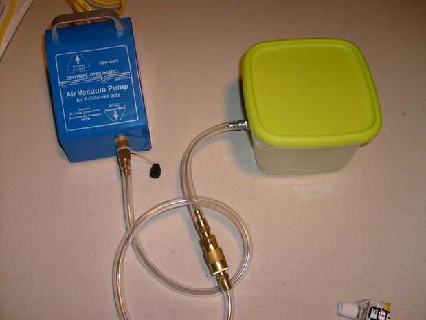 Este proyecto muestra cómo hacer un vacío pequeño aparato de desgasificación para menos de 20 dólares.