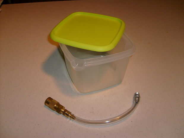 El tramo corto de manguera debe ser lo suficientemente rígido para que no colapse en el vacío. La rápida Conecte el otro extremo no es necesario pero se puede conseguir en cualquier ferretería. El extremo con rosca es rosca solo en un extremo, el otro extremo del conector tiene una punta de bayoneta que va en el tubo.