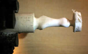 Imagen 3: Este es un ejemplo de una resina de plástico de dos partes "en blanco" que fue desgasificado. El espacio en blanco entonces fue colocado en una fresadora CNC para hacer modelos de varios huesos de la mano humana. Lo más importante, hay sin espacios vacíos en el material.