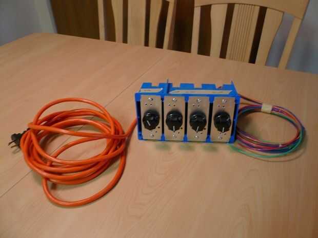 Así que uno de los reguladores puede manejar hasta 5 amperios a 120 V. La corriente calculada anteriormente para el circuito paralelo fue 12,9 amperios, esto es demasiado para un solo atenuador. Así que he decidido utiliza cuatro reguladores, cada uno controla dos elementos de calefacción. Puedes ver cómo fue conectado en el pdf.