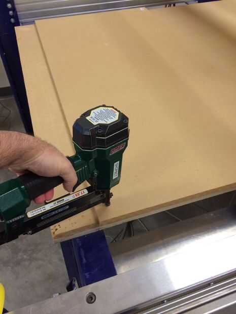 Cuadrado encima de su material y abrazadera o clavar a la Junta de residuos.