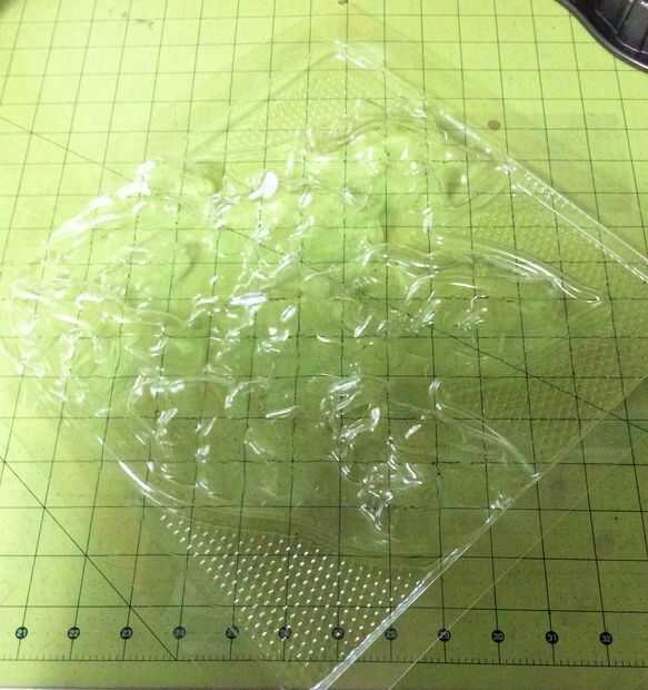 hice en TechShop en Menlo Park.  Aquí está una foto del difusor de luz en el vacío que forma la máquina como se está formando.  Esta máquina utiliza un enchufe molde para piezas de forma con la aspiradora plástico como este.  Esta máquina no funciona