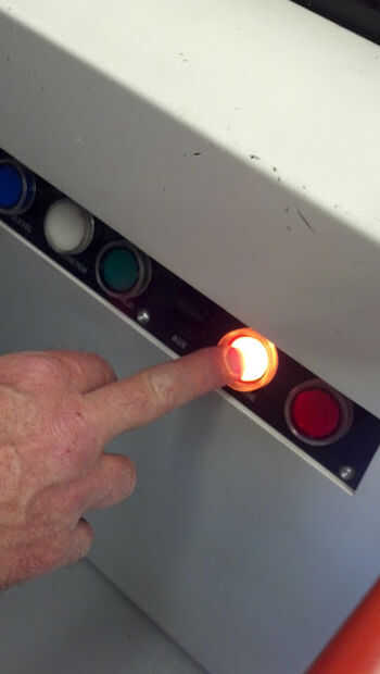 Después de que se haya enfriado, presiono el botón de liberación en el vacío que forma la máquina para inyectar aire para liberar el difusor del molde.  En este ejemplo, el plástico es demasiado gruesa y rígida para que la parte no lanzó con este método.