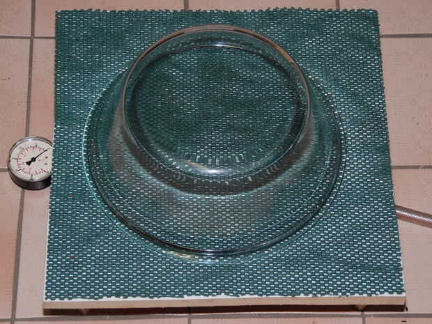 Coloque la cámara de vidrio de la Junta y cuando inicie la bomba, puede que tenga que bajar la cámara cristal suavemente hasta que la Junta empiece a comprimir.