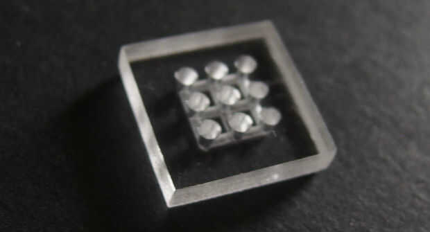 Requiere de la fabricación del conector frontal y el fresado de la parte trasera, así que empieza los orificios de alineación del molino en la placa de plexiglás que se ajustan las posiciones de los agujeros de alineación en el artefacto. Muelen entonces primero los agujeros de tubo cónico con un molino de bolas de 1 mm diam. Luego invierta la placa y volver a alinear en el accesorio con los pernos. Luego molió los canales fluidos usando un molino de punta plana de 1 mm diam y finalmente cortar el chip usando un molino de extremo plano de 2 mm diam. Finalmente sellar el lado de canal de la placa pequeña con cinta scotch o la película de protección de pintura del automóvil preferentemente como se describió anteriormente. También puede utilizar una membrana de silicona en lugar de otro. No hay necesidad para pegar la membrana de silicona ya que operando con vacío se adhieren la membrana por sí mismo al conector.