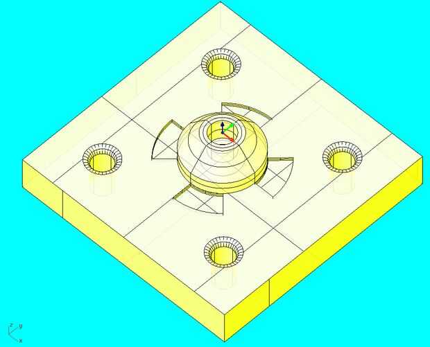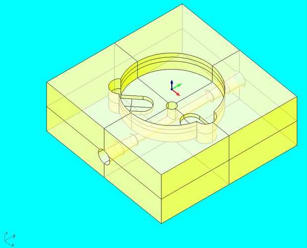 Para hacer que el botón de goma muelo un molde para fundición de caucho. El molde tiene dos partes. Ambas partes se muelen por separado usando un molino de extremo plano 1 mm diam (fresado frontal justo).