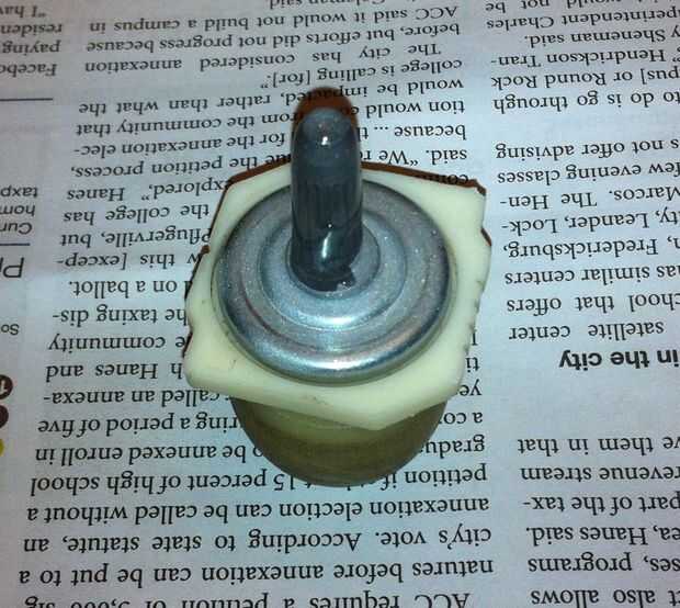 El epoxi de la mezcla y aplicar liberalmente para el eje estriado.  Inserte el eje en el cepillo de rodillo teniendo cuidado de alinear las dos marcas en un paso anterior.  A continuación aplicar epoxi para el agujero del clavo e Introduzca el clavo con un martillo.  Limpie cualquier exceso (teniendo cuidado de no sale nada en la piel).  Dar el tiempo suficiente de epoxy para fijar.