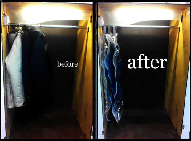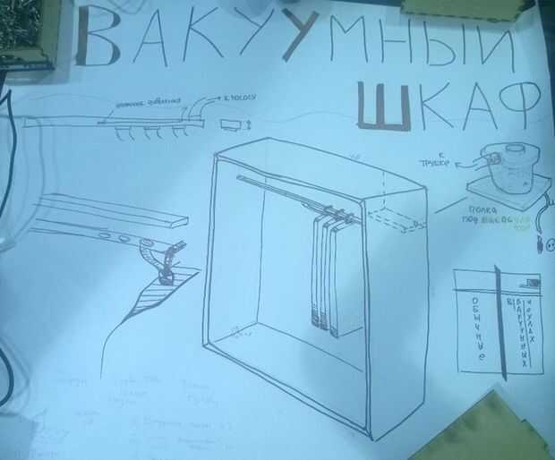 Armario vacío es un armario que le ayuda con el ahorro de lugar para su ropa! La idea principal es utilizar paquetes de vacío conectados a bomba de aire. Sólo puede colgar su ropa en paquete, pulse el botón y armario a minimizarlo. Usted siempre puede estar seguro de su ropa está a salvo de una polilla y el polvo. Este proyecto ha sido creado en 6 días durante VII FabSchool en FabLab Polytech, San Petersburgo, Rusia.