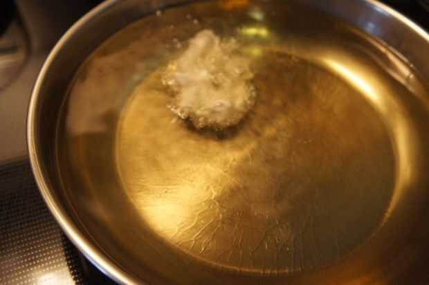 1) Agregue el aceite en una sartén y calentar a media a alta temperatura.