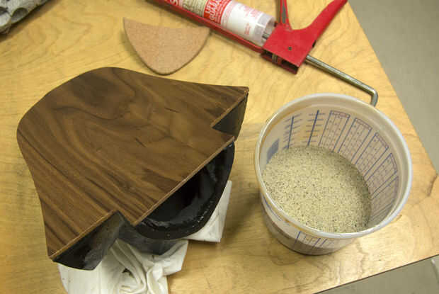 Descargo de responsabilidad: Estoy muy cuidado de mover la pieza con la almohadilla de corcho apoyada plenamente desde abajo. No sé si la goma de silicona tendrá 10 libras de arena, pero lo dudo. Es probablemente mejor usar un epoxy fuerte - o para hacer la pieza con la parte que concreta, mediante la adición de un panel en el paso de preparación para el molde al principio.