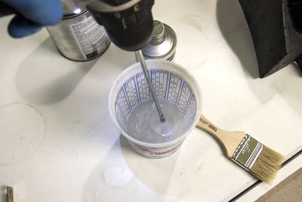 Siga las instrucciones en el sellador, añadiendo 3 partes A 1 parte B y mezclar por 30 segundos. Simplemente había cepillado el sellador en y lo remojar la pieza para arriba y dejó a curar durante la noche.