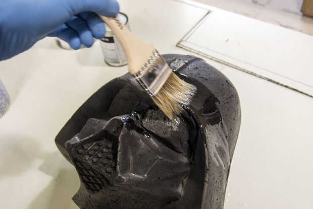Hay un montón de concreto selladores y todos ellos trabajarán con ShapeCrete pero decidí sellar esta pieza con Surecrete PC-12, que es un mejora de color alto brillo epoxi sellador (básicamente una capa de plástico). Una capa convirtió la pieza de color gris oscuro a negro y lo terriblemente brillante. Puede desafilar hacia abajo con lana de acero 0000 #, que podría hacer más adelante.