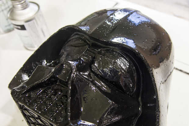 Va a ser más rentable comprar una lata de pintura en aerosol negro brillante, pero ya tenía este sellador en el estante.