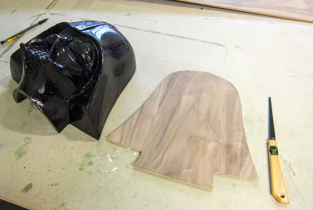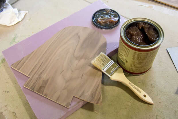 Para la parte posterior de la tapa utilicé un trozo de nuez 1/4" con una base MDF. Es fácil de cortar con una sierra de mano, pero puede utilizar una sierra de cinta, Sierra de contornear o rompecabezas si tienes una.