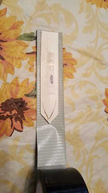 Compré un cuchillo viejo nogal americano pegatina de Ohio. Está hecho de acero de buena calidad y es menos de $15, pero necesitan un caso. Como la mayoría de los cuchillos de cocina, vino con una funda común de tarjeta. Decidí modificar que el manguito en una vaina. Empecé dibujando el contorno de la punta en la cartulina. Entonces recortan un poco más de necesario.