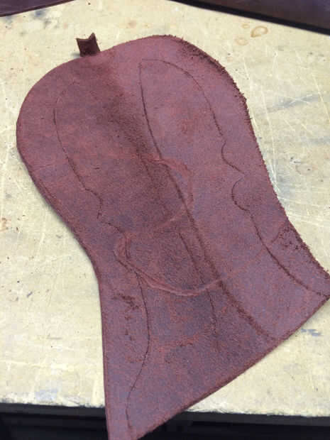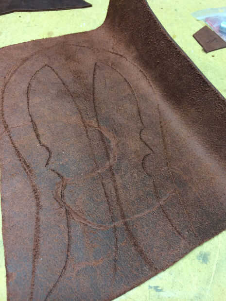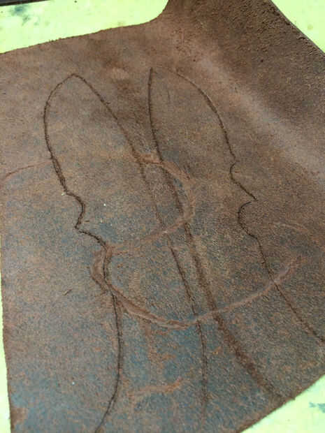 3 - trace una línea alrededor del contorno trazado cuchillo dejando al menos 1/2" de extra para permitir el corte offs y para colocar los remaches.