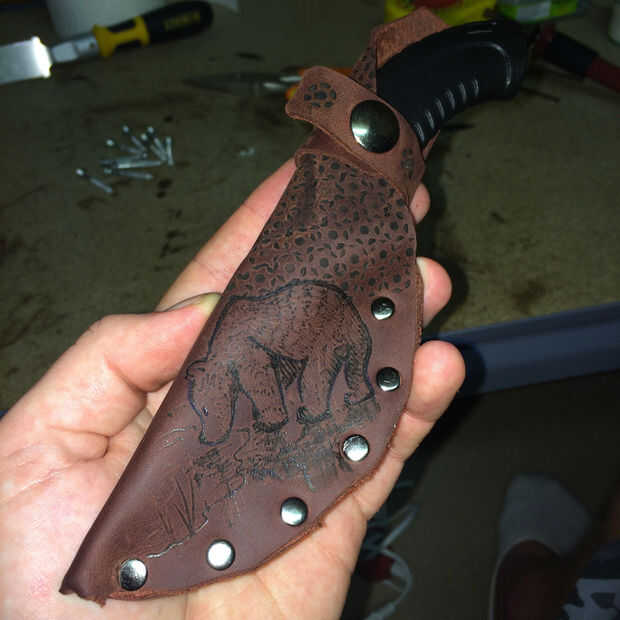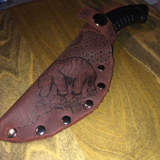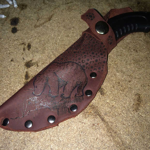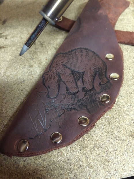 Con la estufa de leña listo para comenzar a trazar el diseño y efectivamente quema la imagen en el cuero. Empezar lento y luego añadir al contorno de líneas más grandes y más oscuro donde tienen que ser de fabricación.