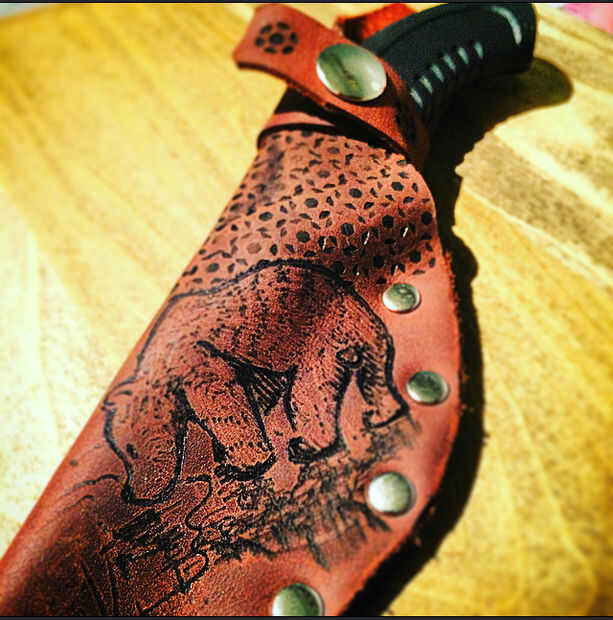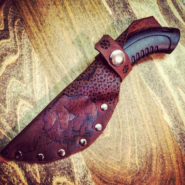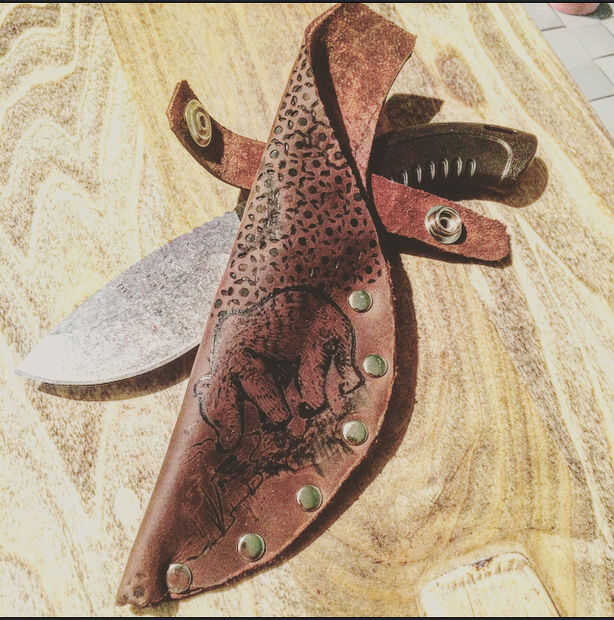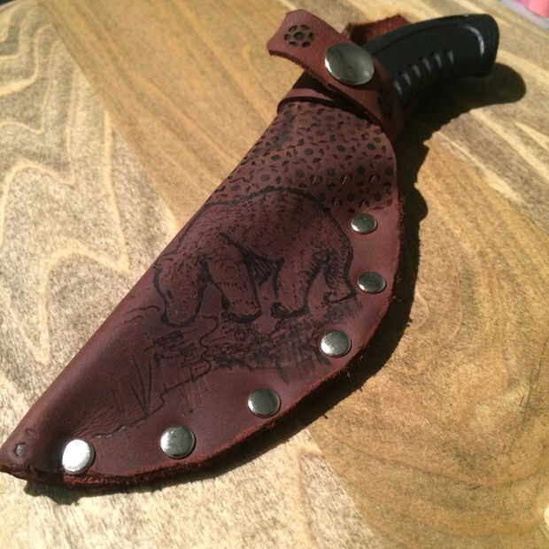 Compré un cuchillo viejo nogal americano pegatina de Ohio. Está hecho de acero de buena calidad y es menos de $15, pero necesitan un caso. Como la mayoría de los cuchillos de cocina, vino con una funda común de tarjeta. Decidí modificar que el mangui
