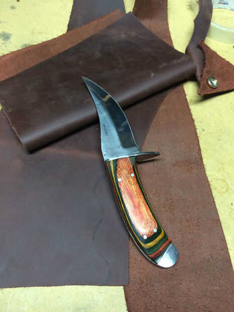 Una vaina de cuchillo, usted puede esperar que sea flaco y largo para la mayoría de cuchillos. Simplemente coloque su cuchillo elegido y ver qué piezas funcionan mejor. Asegúrese de dejar 3/4 de pulgada a cada lado de la cuchilla para dejar espacio para los remaches.