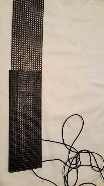 La tira restante del lienzo será la parte frontal de la vaina del cuchillo. Tendrá que ser ajustado para que coincida con la longitud de la sección interior. Pruebe la colocación de la hoja del cuchillo antes de cortar. Luego coloque la tira frontal en la parte superior la sección interior y empezar a coser desde el centro a un lado dejando una casilla libre desde el borde en todo momento. (Como se muestra en la imagen final).