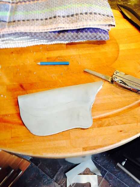 Compré un cuchillo viejo nogal americano pegatina de Ohio. Está hecho de acero de buena calidad y es menos de $15, pero necesitan un caso. Como la mayoría de los cuchillos de cocina, vino con una funda común de tarjeta. Decidí modificar que el mangui