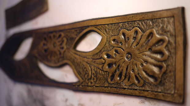 Luego haz unos guantes listos para teñir. Estoy usando un antiguo aquí. Esto significa mancha algo realzado realmente oscuro y algo alta no tanto. Se puede ver en la imagen.