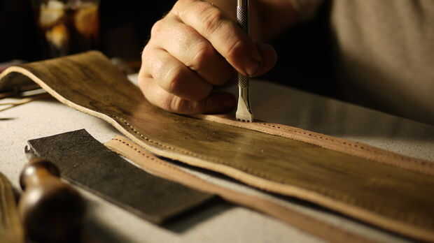 Una vez sus recortes en y cosida, es tiempo de preparar la roncha ejecutando la lezna de costura a través de él y la pieza de forro.