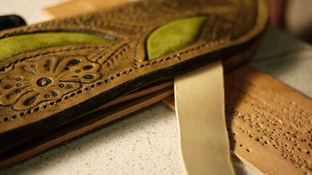Vaina de cuchillo de cuero hecho en casa barato, fácil de cuero usado
