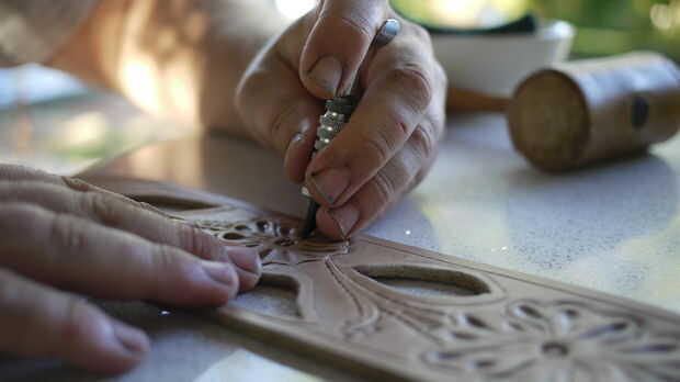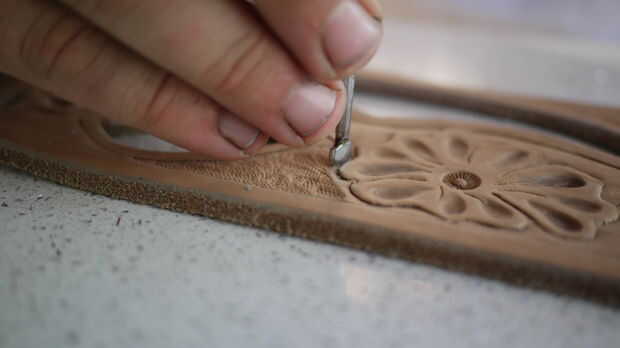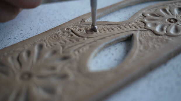 Añadir más detalles a sus flores que deseas y sus cortes de la frontera con el cuchillo del eslabón giratorio. Entonces pasar a usar su información para llenar todo el espacio alrededor de sus flores y recortes para el ante. Cuando se utiliza una prueba de antecedentes para girar la herramienta para evitar que cualquier patrón de marcas de la herramienta forma.