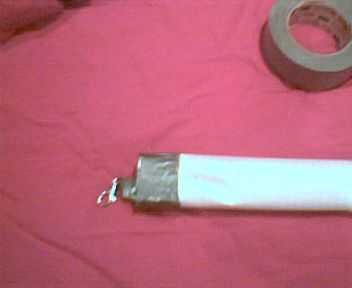 Como dije no recuerdo cómo lo hice, pero Coloque su papel laminado para su empezó (creo que básicamente es una pulsera de cinta del conducto con un clip encerrado en una cerradura del equipaje, del extremo de la cerradura cubierta por cinta) ponga una cinta dentro del papel y de arranque.