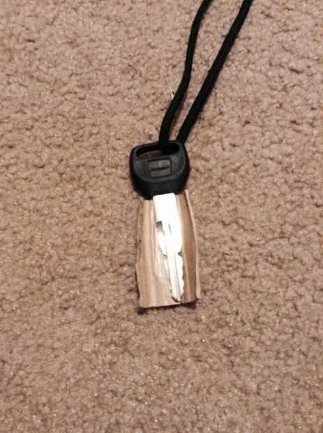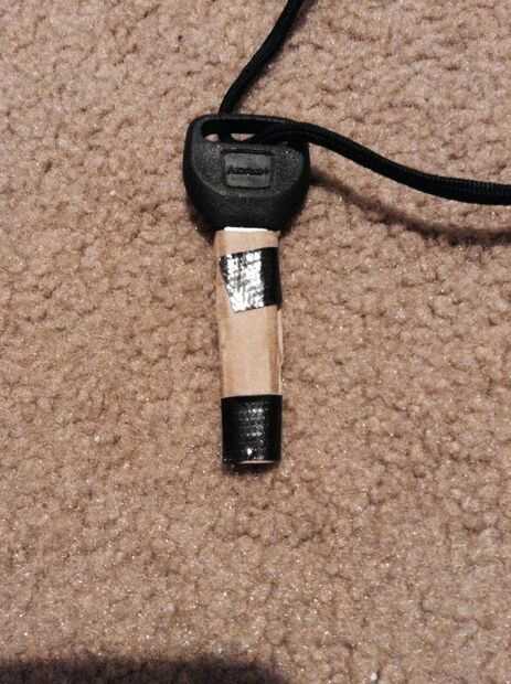Continuación tenemos que añadir la vaina de la clave tome la llave y salir. Así que tomar el cartón y envolver alrededor de la pieza clave de metal corte el extra y la cinta firmemente que la clave de lo que puede deslizar dentro y fuera.