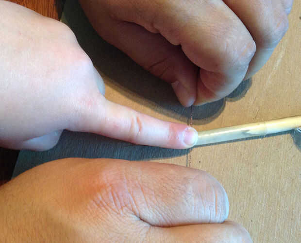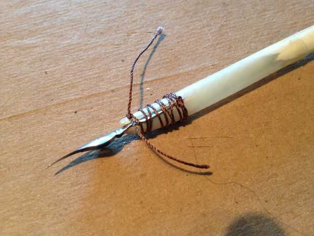 No queremos la punta de metal para salir, así que ató a la canilla con hilo de bordar pesado.