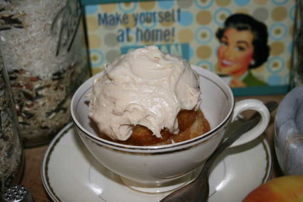 Tomar un cupcake una vez ha enfriado y ponerlo en un plato. Salsear un poco jarabe de arce y luego helada les con eso oh tan delicioso cacahuate crema glaseado de queso!